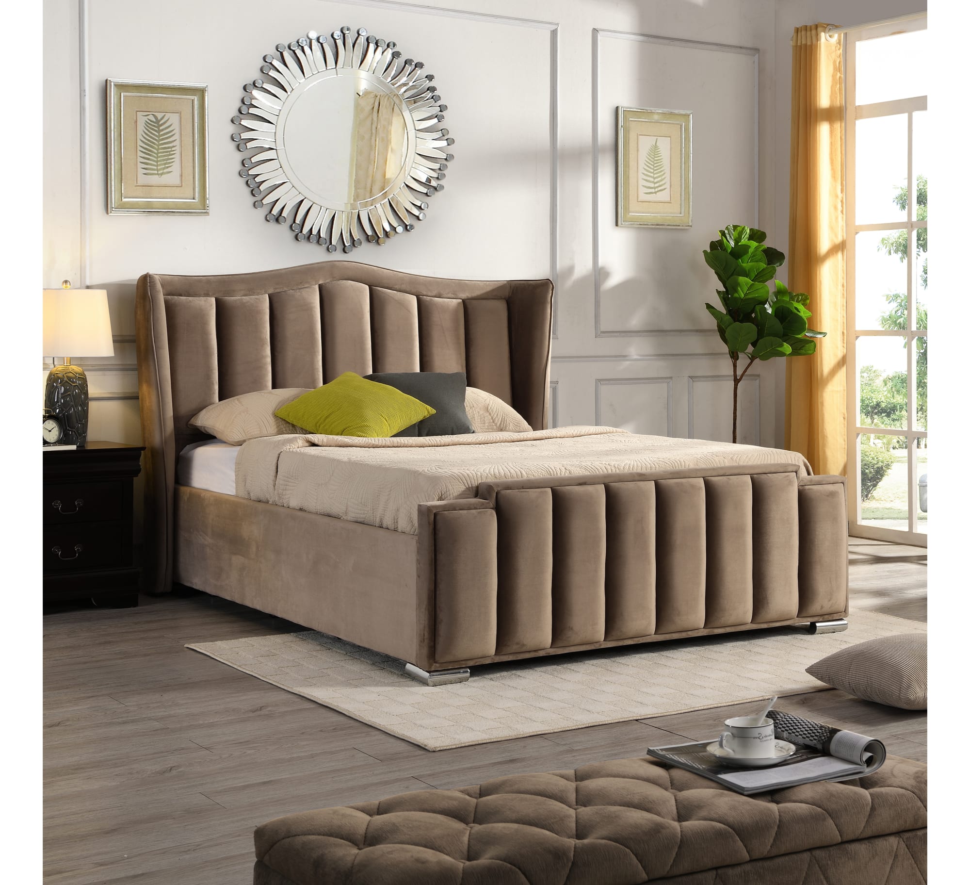 Experience Opulence with GIE’s Clare Gas-Lift Bed! Elevate your bedroom with GIE’s Clare Gas-Lift Bed. This luxurious masterpiece transforms your space into an elegant haven. GIE’s Clare Gas-Lift Bed, with its lavish grey velvet finish, offers more than just a color. It’s a canvas of opulence for a stylish and sophisticated bedroom. The Victorian-inspired design, with winged sides, adds timeless elegance to your room. The exquisite, lined detailing on the headboard and textile footboard demands attention, making it the focal point of your bedroom. But it’s not just about style; it’s practical too. Enjoy ample under-bed storage with the Gas-Lift feature for easy access. The bed stands on sturdy metallic feet for stability. Upgrade your lifestyle with GIE’s Clare Gas-Lift Bed and experience the perfect blend of glamour and convenience in your bedroom.
