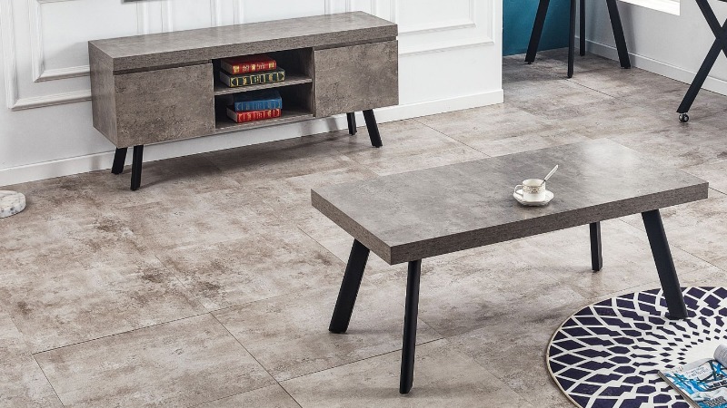 - The Fredrik Dining & Occasional Range is finished in Grey Marble with black metal legs.