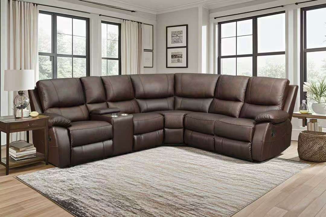 • Grayson Manual Recliner Leather Corner Sofa Range has two drink holders, wireless charging, and storage