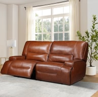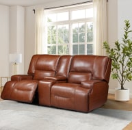 Introducing the Miami collection, a sensational dark brown range including a 1 seater, 2 seater (with console), 3 seater, and wingchair. Paradise in your living room awaits with the wonderfully comfortable leather on these pieces. The 3 seater and 1 seater feature a power recliner for both headrest and seat for the ultimate sprawl, while the 2 seater takes it up another level with the same recliner, along with USB port facilities and cup holder among its central console. Also available in this range is the cosy leather wingchair, complete with fine brass beading and ornate legs.