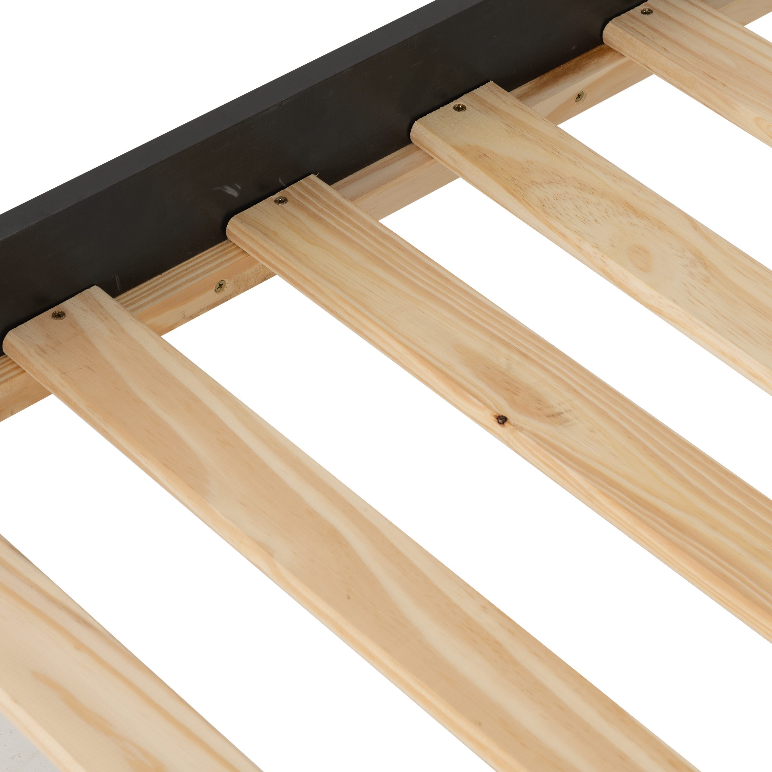 • The headboard has slatted detailing