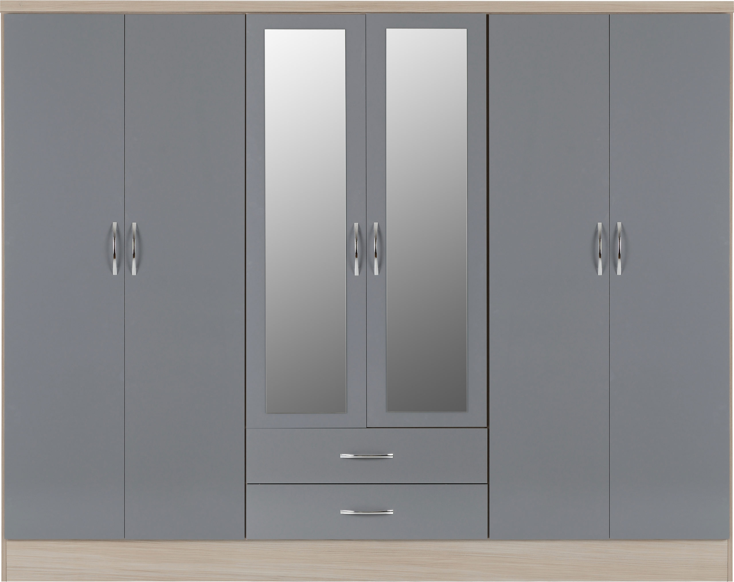 Nevada 6 Door 2 Drawer Mirrored Wardrobe: