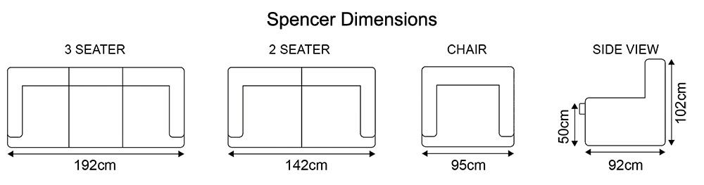 • Spencer Sofa Range 2 Seater: W142 x D92 x H102 cm