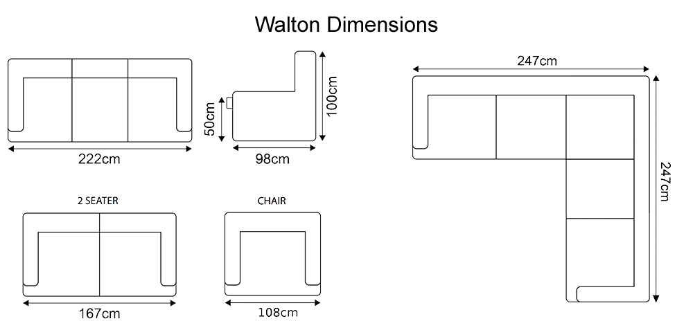 • The Walton Sofa Range comes in various sizes, shapes, and colours.