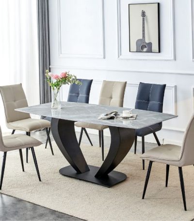 €599.00- Murcia Ceramic Table with Marble effect, Silver-Grey & White table top